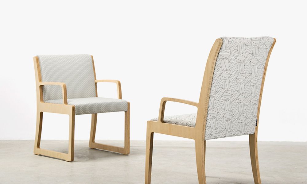 The ability for custom upholstery and the streamlined frame allows it to be designed for hospitality and workspaces also.